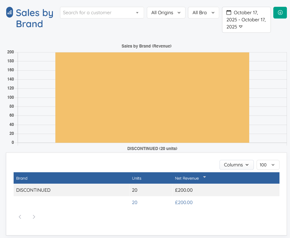 - Filters: Search customers, pick origins, brands, and dates. Updates happen instantly.