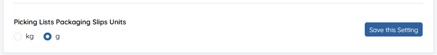 - Update Weight Unit: You'll see a toggle option labelled Picking Lists Packaging Slips Units.