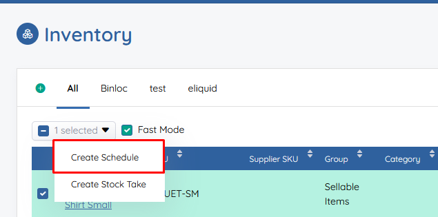 If you have products set up with a Bill of Materials (BOM), you can select multiple items directly from the Inventory List and send them straight to the schedule creation form.