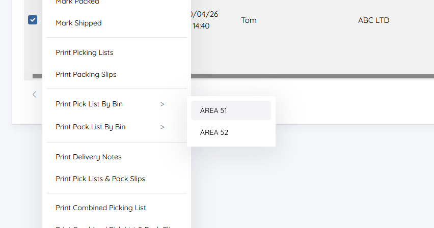 This feature allows you to print pick and pack slips based on the specific bin location.