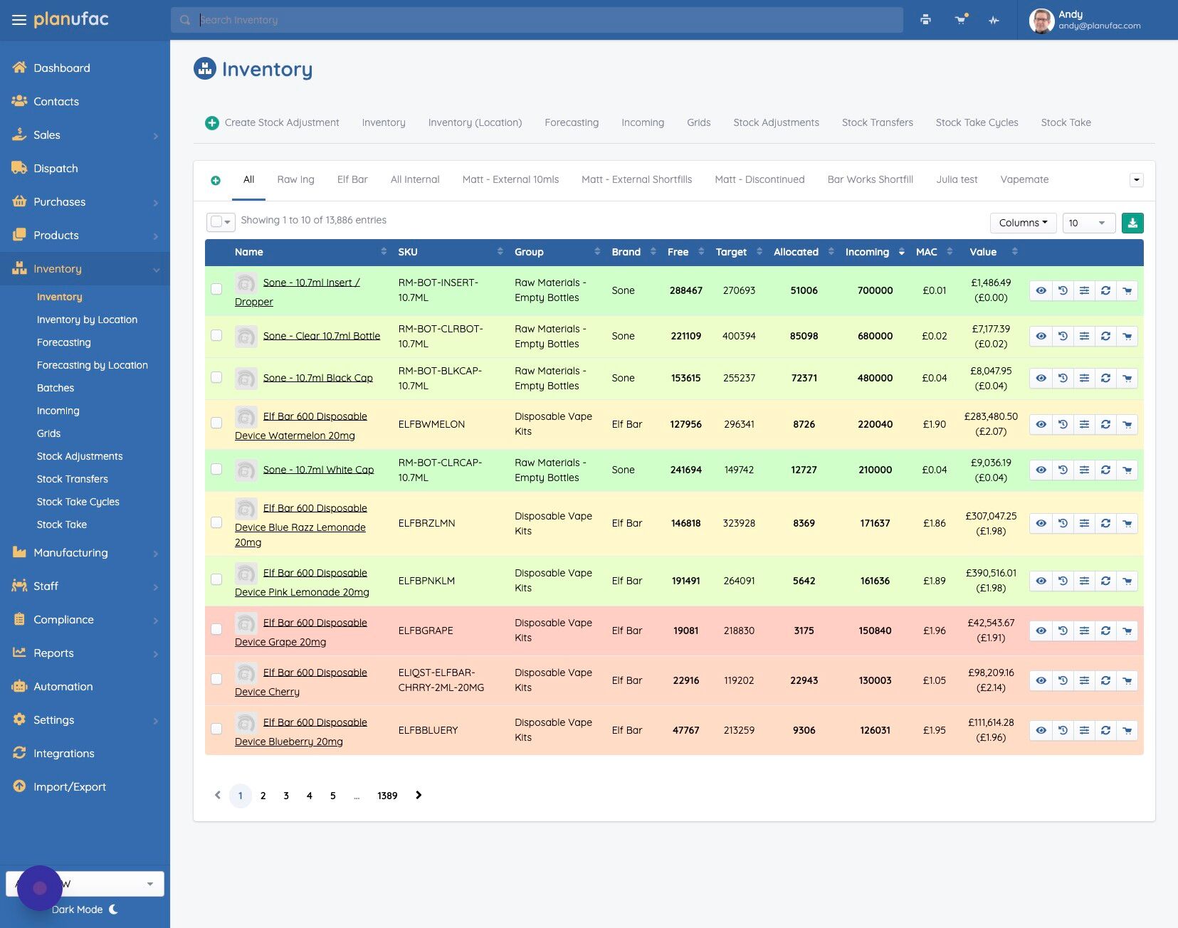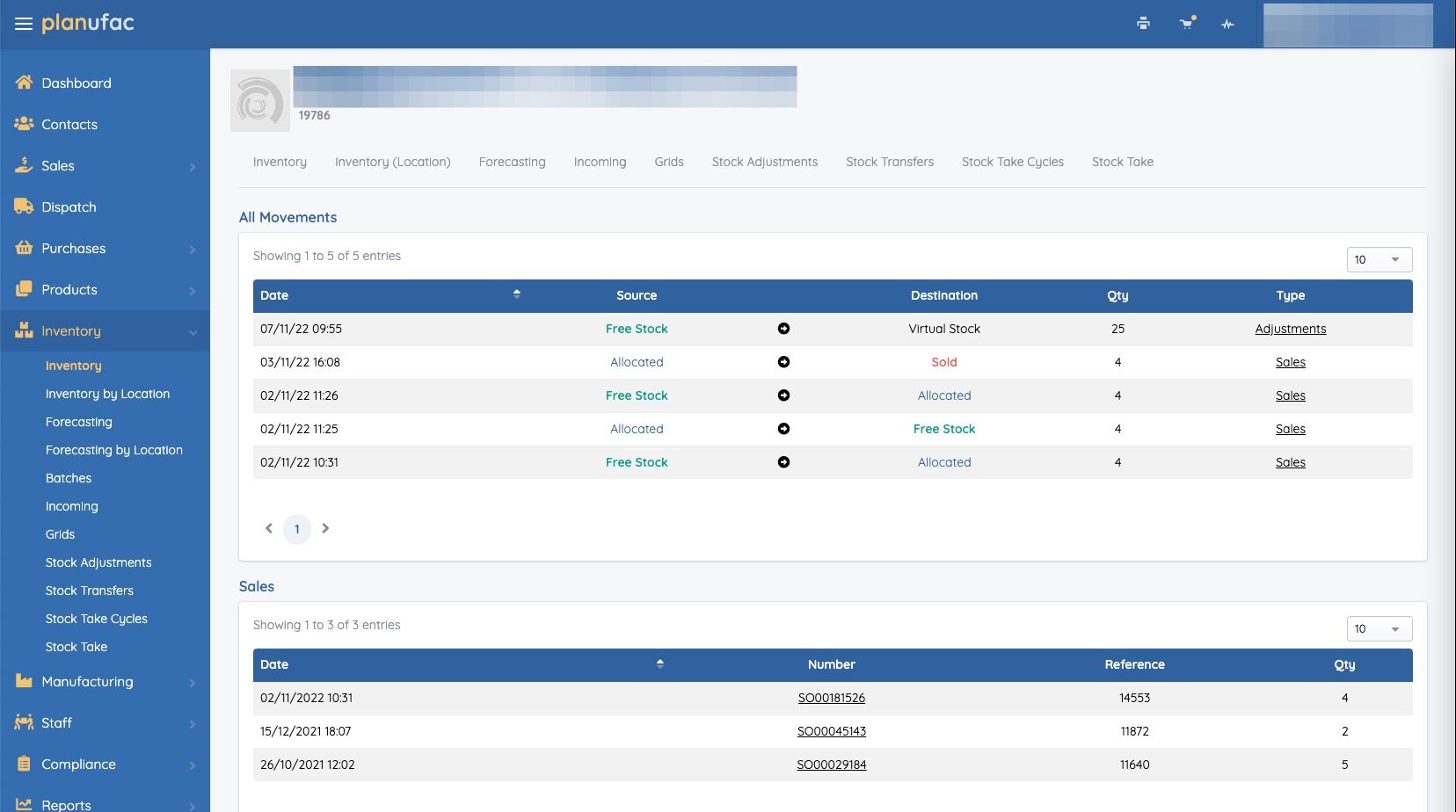 4. The history page will show detailed historical inventory movements, including purchases and stock adjustments