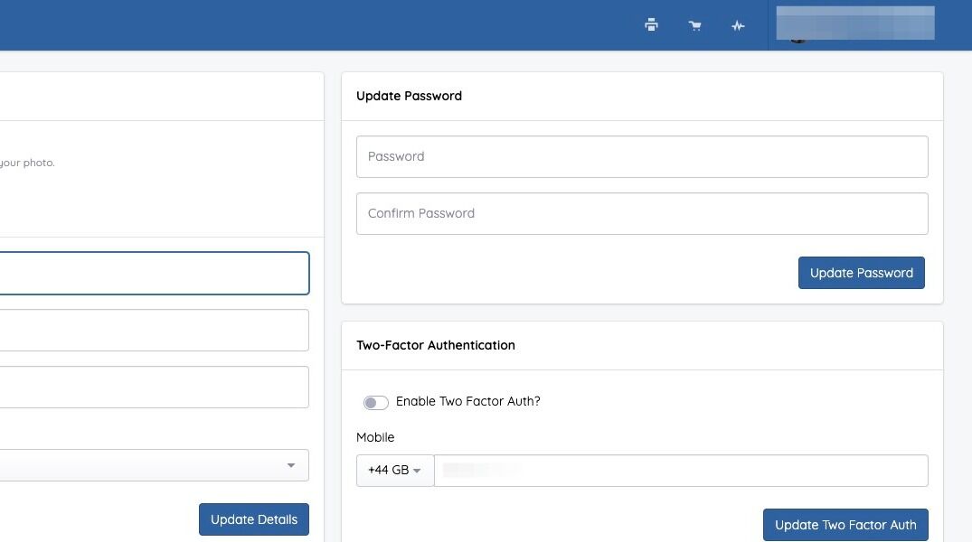 - The toggle should now be off, Click "Update Two Factor Auth" and Two Factor Auth will be disabled on your account.